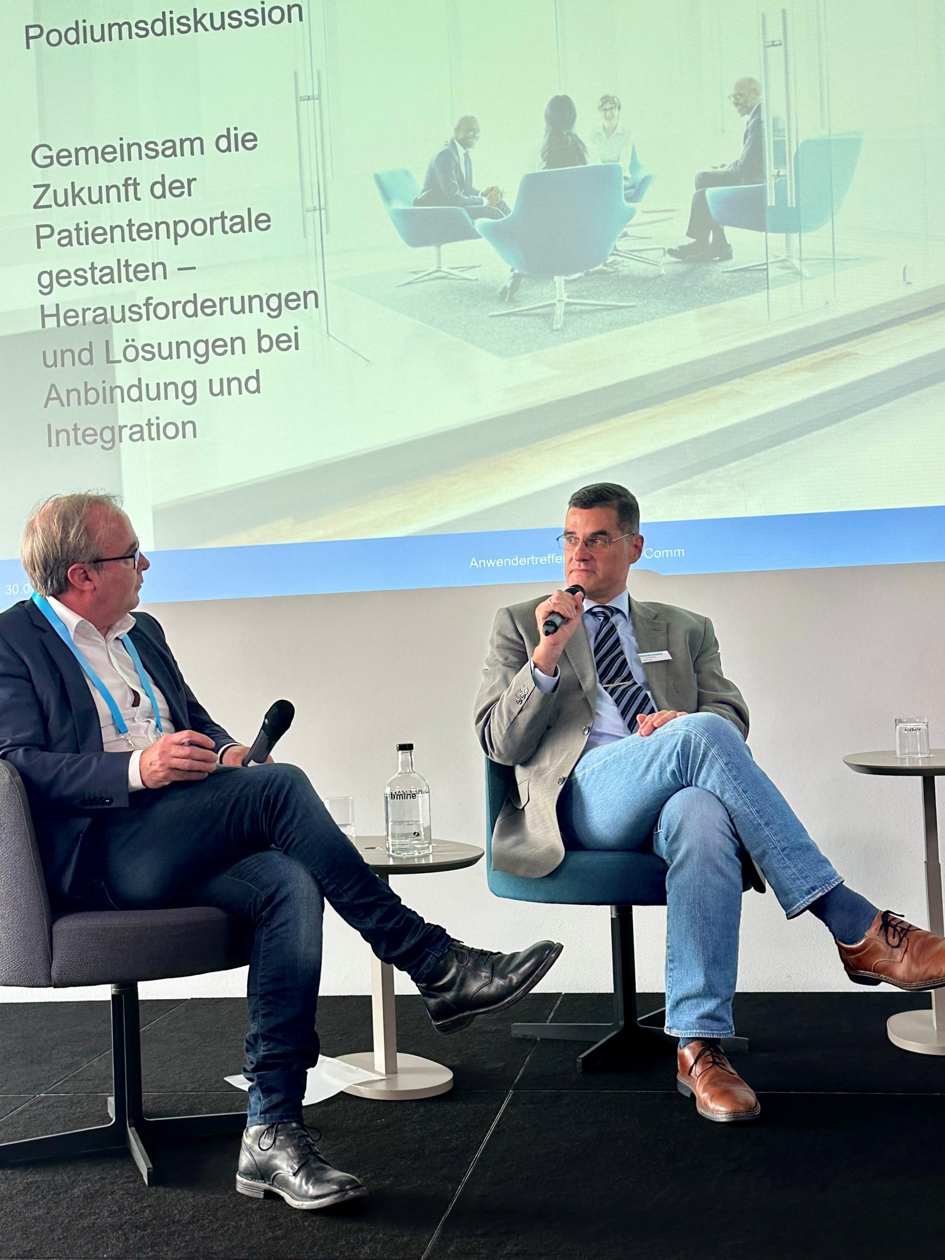 Ein Thema, das sich durch beide Tage zog, war die digitale Patientenkommunikation. In der Podiumsdiskussion am ersten Nachmittag wurde deutlich, wie viel Potenzial in Patientenportalen steckt – und wie viele Fragen noch offen sind. Moderiert von Michael Franz, Experte für Digital & Smart Health, geschäftsführender Gesellschafter der portaleins, diskutierten Expert*innen wie Simone Heckmann, Dr. Ingo Matzerath, Janis Laser, Strategic Partnerships Manager Hospitals, Doctolib GmbH, und Franz Obermayer, Chief Sales Officer, the i-engineers GmbH, über Interoperabilität, Datenschutz und Nutzerfreundlichkeit.