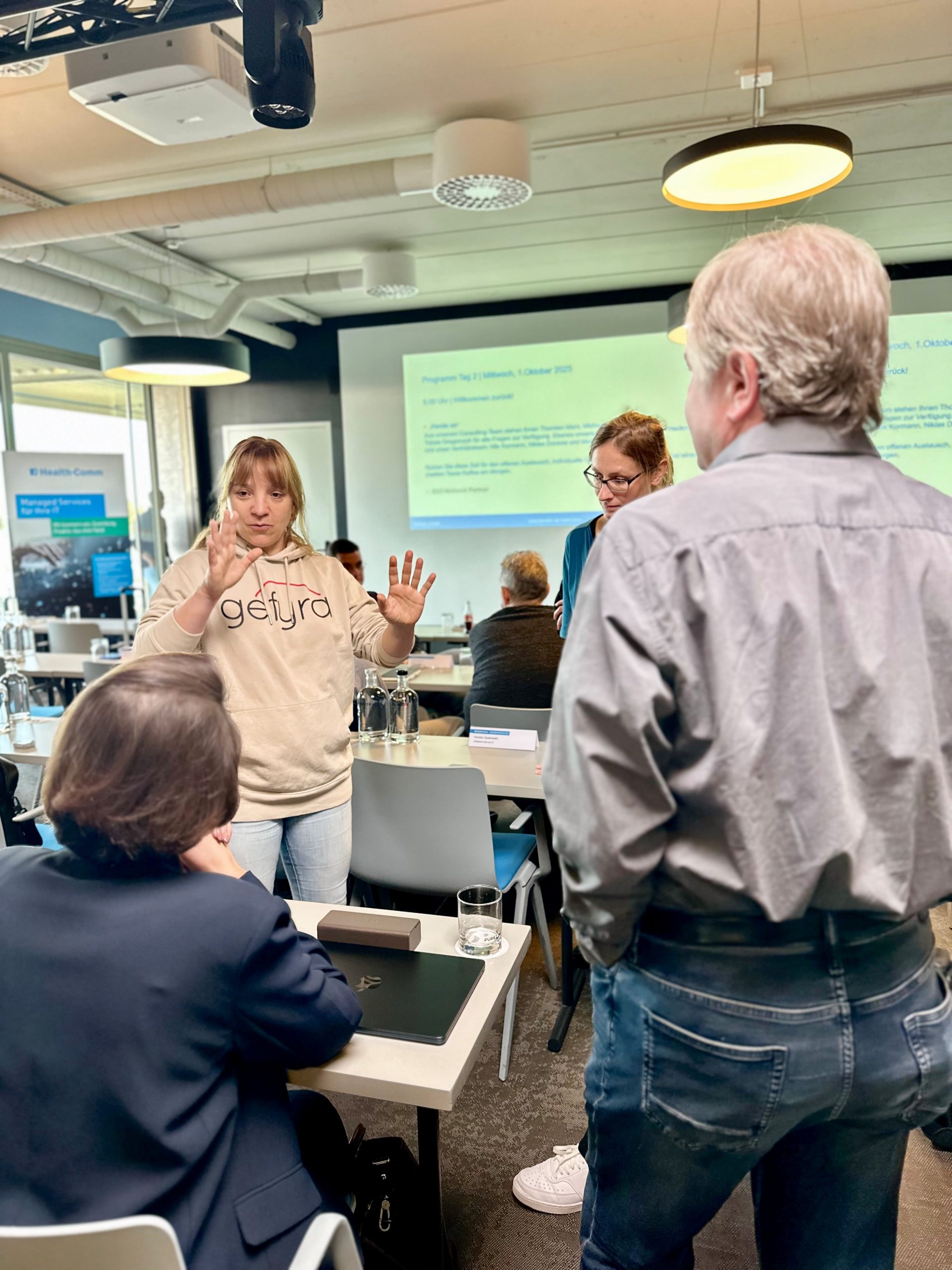 Internationalisierung war ebenfalls ein Thema. Mit der Gründung der Health-Comm SAS in Paris wurde ein neuer Schritt in Richtung europäischer Markt gemacht. Jörg Schwarz von Infor brachte den Blick aus den USA mit und zeigte, wie Erfahrungen aus anderen Ländern helfen können, eigene Strategien zu schärfen. Ob KHZG oder Obama Care – die Herausforderungen ähneln sich, und die Lösungen liegen oft in der Zusammenarbeit.